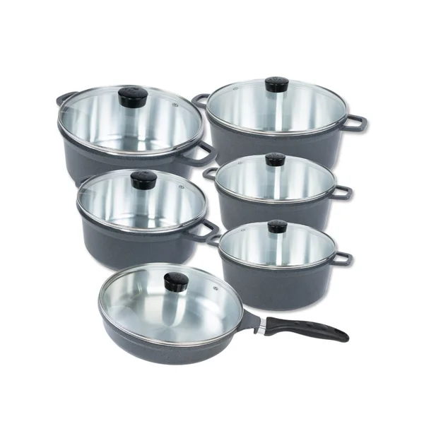 Jogo de Panelas + Frigideira CAVA – Alumínio Fundido Grosso com Tampas de Vidro
