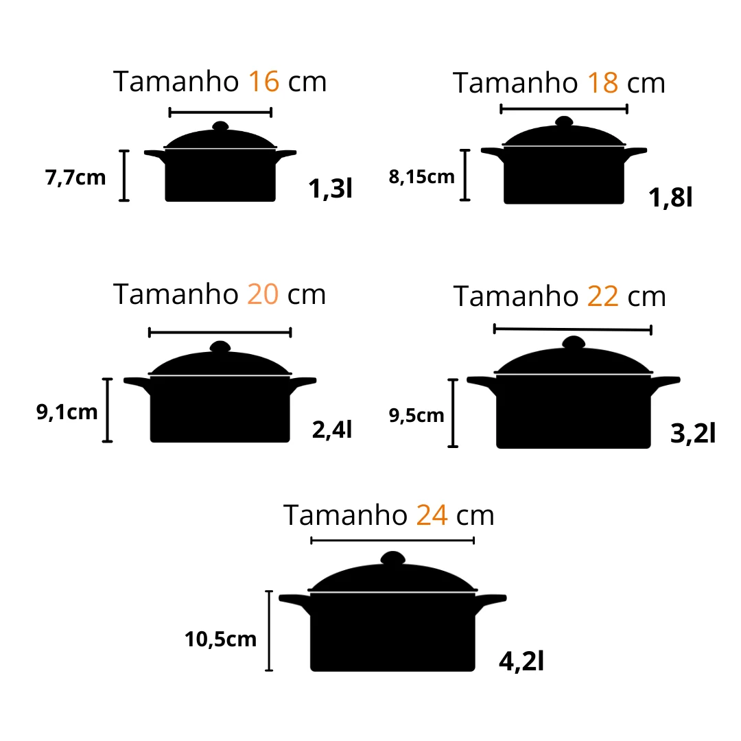• Tamanhos disponíveis: 16cm, 18cm, 20cm, 22cm e 24cm de diâmetro.