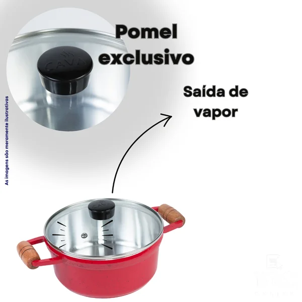 Panela CAVA em Alumínio Fundido com Tampa de Vidro e Alças de Madeira